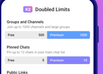 其中包括上傳更大文件(最大4GB)和更快下載文件的能力。應用程序中的所有內容也有雙倍限制:最多關注1,000個頻道,創建最多20個聊天文件夾,每個文件夾包含200個聊天記錄,固定10個聊天記錄,最多保存10個最喜歡的貼紙,并在應用程序中添加第四個帳戶。
