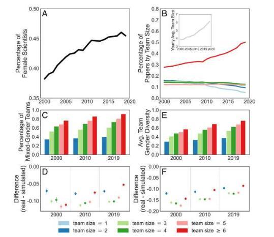 該團(tuán)隊發(fā)現(xiàn),性別多樣化團(tuán)隊的優(yōu)勢適用于小型和大型團(tuán)隊,所有45個醫(yī)學(xué)子領(lǐng)域以及女性或男性領(lǐng)導(dǎo)的團(tuán)隊,并推廣到過去20年中所有科學(xué)領(lǐng)域的已發(fā)表論文。