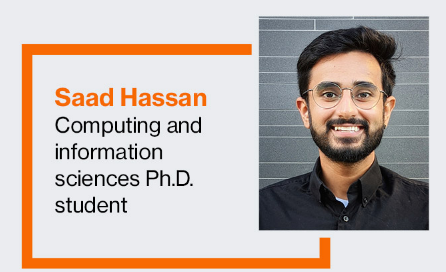 Saad Hassan 認為,可訪問性應該是技術創新的主要焦點,而不是事后的想法。他最近獲得了語言學習公司 Duolingo 的資助,以資助他的博士論文,主題是手語等語言中不熟悉的手語的查找系統。他還研究了實時字幕、自然語言處理系統中的偏見、語言學習和心理健康。