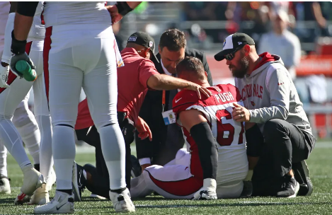 他在紅雀隊以 19-9 輸給西雅圖海鷹隊的上半場受傷。