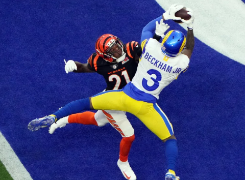 貝克漢姆繼續為公羊隊在超級碗中的成功做出貢獻,他在52碼處接住了兩次傳球和一次觸地,然后在第二節末段摔倒在草皮上,結果是左膝蓋左前交叉韌帶撕裂。