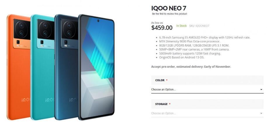 IQOO Neo 7 5G手機現在可以在Giztop上購買,起價為459美元。請注意,此價格僅適用于基本款式。