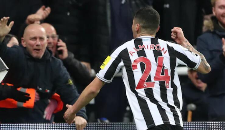 紐卡斯?fàn)栐诘?1分鐘取得突破,這是米格爾·阿爾米隆的精彩射門(mén),他在被布魯諾·吉馬良斯發(fā)現(xiàn)后,用冰壺射門(mén)挑出了球網(wǎng)的遠(yuǎn)角。