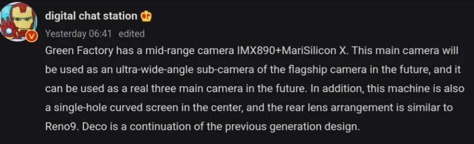 著名的情報員數字聊天站通過微博帖子透露,OPPO正在開發一款未知的中檔智能手機,該智能手機將配備索尼的IMX890傳感器和該公司自行開發的MariSilicon X芯片。對于初學者來說,它是一種基于成像的芯片組,由公司獨立設計和開發。