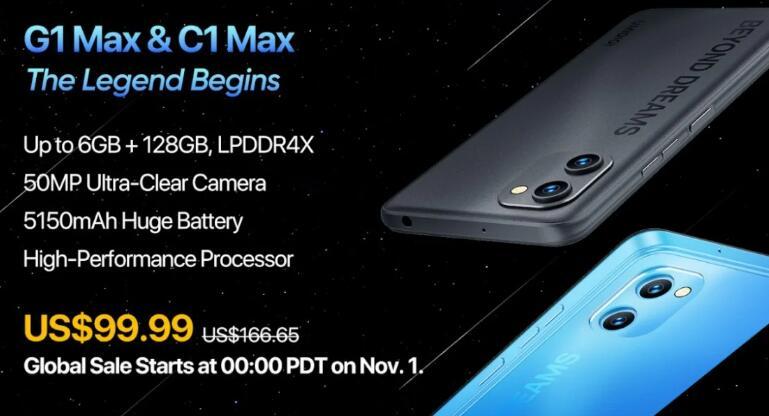 UMIDIGI G1 Max 有星空黑和銀河藍兩種顏色可供選擇,而 C1 Max 則提供星空黑和啞光銀選項。零售價為166.65美元的智能手機將以99.99美元的折扣價提供,僅在全球速賣通的全球首映銷售下提供。請注意,促銷將于太平洋夏令時2022年11月1日00:00開始。但是,您甚至可以在銷售開始之前將產品添加到購物車中,以便更快地結帳。