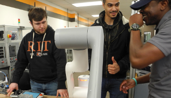“我從事這項(xiàng)工作將近 30 年,隨著再次將制造業(yè)轉(zhuǎn)移到海外,我每年都對自動化帶來的機(jī)遇感到更加興奮。實(shí)施機(jī)器人技術(shù)的便利性比以往任何時候都更容易且更便宜,”戴維斯說。“我堅(jiān)信,我們幫助人們越多,我們就會學(xué)到越多,我們就越成功。這是關(guān)于幫助學(xué)生、幫助 RIT 和機(jī)器人領(lǐng)域的其他學(xué)校。”