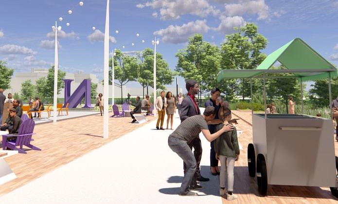 這些禮物將幫助重新構想東草坪——一個毗鄰諾里斯大學中心的開闊場地,享有附近密歇根湖的壯麗景色——成為埃文斯頓校區學生、教職員工和社區互動與協作的主要場所。早期計劃包括廣場和展館,將容納各種活動和季節性活動;由西北大學食品服務合作伙伴 Compass Group 領導的戶外餐廳和食品供應商空間;可移動的桌椅和雨傘;游戲平臺;和一個俯瞰瀉湖的休息室。