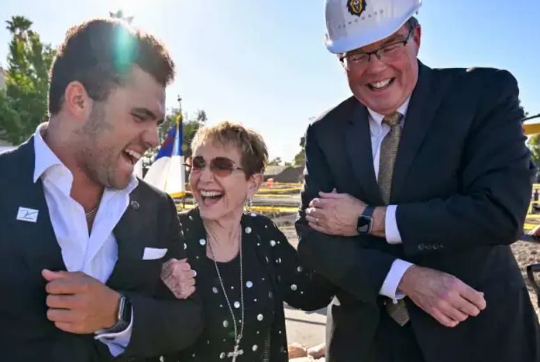 在建設(shè)的背景下,學(xué)生運動員觀看了先鋒大學(xué)官員在科斯塔梅薩的一個新的混合競技場和學(xué)習(xí)實驗室破土動工。