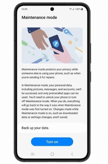 維修技術(shù)人員甚至無法查看或使用您安裝的應(yīng)用。但是,如果他們需要它,他們可以從銀河商店下載新的應(yīng)用程序。但是,一旦您退出維護(hù)模式,它們就會(huì)自動(dòng)刪除。退出還會(huì)刪除修復(fù)期間生成的所有其他數(shù)據(jù)或帳戶。您將獲得與移交的手機(jī)相同的手機(jī),而不會(huì)更改您的應(yīng)用程序和數(shù)據(jù)。但是,在發(fā)送手機(jī)進(jìn)行維修之前備份數(shù)據(jù)仍然是一種安全的做法。
