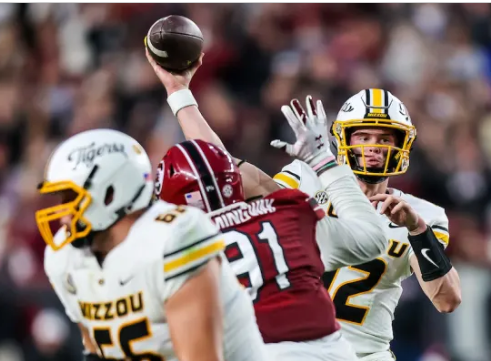 整個賽季第一次在分區比賽中,密蘇里隊在攻防兩端都打出了完整且紀律嚴明的比賽,并在周六以 23-10 擊敗排名第 25 的南卡羅來納州,取得了本賽季的首場客場勝利。