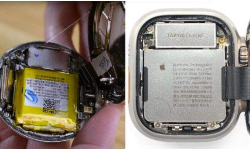 正如我們在下面的圖片中看到的那樣,內部的 Pixel Watch 看起來比 Apple Watch 更簡單,制造也更標準,因為一旦打開設備,肉眼就可以看到電池,而得到 Apple 的最后照顧。