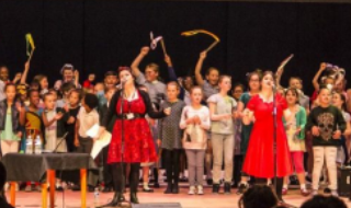來自35所學校的參與者參加了對披頭士樂隊SgtPepper專輯的特別致敬,然后聚集在一起參加了一場壯觀的音樂會,孩子們在現場樂隊和特邀表演者的陪伴下演唱。