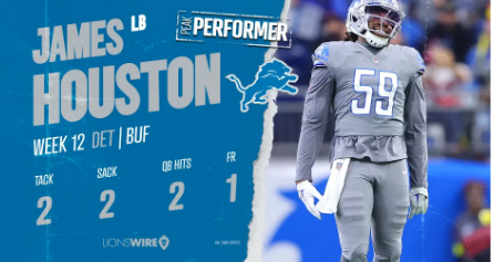 盡管輸了,但獅子隊(duì)的表現(xiàn)還是有很多值得喜歡的地方。這場(chǎng)比賽最引人注目的球員是一個(gè)不太可能的球員:第六輪新秀詹姆斯休斯頓,他兩天前才從訓(xùn)練隊(duì)中被提升。