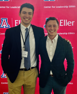 創業專業 Gavin Purdy '23 和金融與項目管理雙學位 Teddy Zinn '25 代表伊隆大學參加由亞利桑那大學領導道德中心主辦的第 20 屆年度大學道德案例競賽。