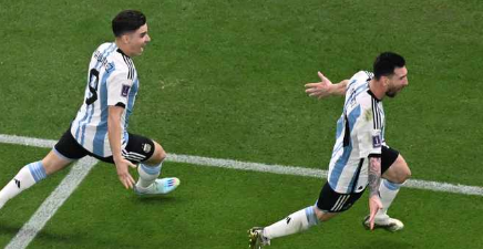 梅西追平了迭戈馬拉多納的阿根廷 21 場世界杯比賽記錄,他在一個多小時后無處可尋,然后接到天使迪瑪利亞的傳球,找到足夠的空間并在 20 米外用左腳掃射。