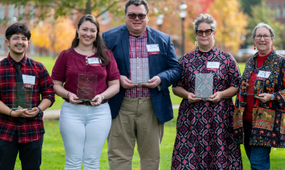 Bud Harrelson '99、Jonathan Shutt '05、Ket Cordova '23、英語教授 Kathy Lyday 和藝術史教授 Kirstin Ringelberg 于周六在 McKinnon Hall 舉行的 LGBTQIA 校友網(wǎng)絡社區(qū)豐富獎早午餐期間獲得表彰,作為 Homecoming & Reunion 的一部分周末慶祝活動。