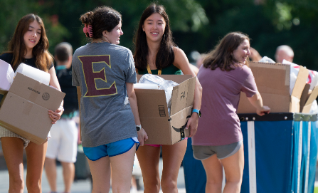 這一天開始時,學生、教職員工在 Schar 中心入口處用歡呼聲歡迎家庭,學生們在那里登記入住并收到一個包裹,里面裝滿了他們在 Elon 開始所需的東西——房間鑰匙、停車證、鳳凰卡、時間表和大量的教育材料。