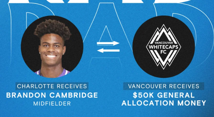 此外,CLTFC 已在 2023 年將 50,000 美元的一般分配資金 (GAM) 交易給溫哥華白帽隊,以換取這位 20 歲球員的 MLS 本土領土獨家權。如果滿足某些激勵措施,溫哥華還將保留夏洛特未來為劍橋收取的任何轉會費的一定比例,以及未來有條件的 GAM 中高達 100,000 美元的費用。