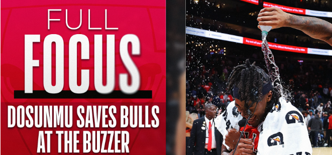 DeRozan 錯(cuò)過了一切,但 Ayo Dosunmu 在蜂鳴器響起之前將球穩(wěn)住并彈起的完美位置。