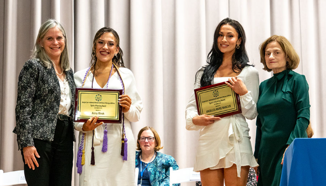 “為了來(lái)到這里,我們克服了很多困難。你們每個(gè)人都應(yīng)該為我們所取得的成就感到無(wú)比自豪。不是每個(gè)人都能做到我們所做的,”來(lái)自新澤西州沃爾的喬治亞·卡羅斯 (Georgia Carros) 在儀式上發(fā)表了演講。她回憶說(shuō):“通過(guò)我們?cè)谝黄鸬臅r(shí)間,我已經(jīng)成長(zhǎng)為真誠(chéng)地尊重和關(guān)心我的每一位同學(xué)——這就是為什么我很高興看到他們?cè)谧o(hù)理生涯中取得的成就。”Carros 還因?yàn)?GPA 最高的學(xué)生而獲得了 Rich Hader 學(xué)術(shù)卓越獎(jiǎng)。她接受了海洋大學(xué)醫(yī)學(xué)中心急診室的注冊(cè)護(hù)士職位,目前擔(dān)任患者護(hù)理技術(shù)員。