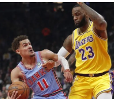 NBA常規賽湖人和老鷹的比賽正在進行中。