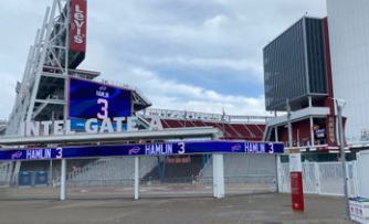 49 人隊用最初出現在NBC Sports Bayarea上的 Levi's Stadium 標牌向 Bills 的 Hamlin 致敬