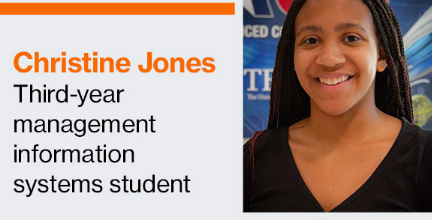 來自密歇根州英克斯特的三年級管理信息系統學生克里斯汀·瓊斯 (Christine Jones) 獲得了道格孔雀獎學金。該獎學金幫助 RIT 的弱勢學生。