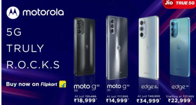 在印度支持 Reliance Jio 的 True 5G (SA) 模式的摩托羅拉 5G 設備列表包括:摩托羅拉 Edge 30 Ultra、摩托羅拉 Edge 30 Fusion、Moto G62 5G、摩托羅拉 Edge 30、Moto G82 5G、摩托羅拉 Edge 30 Pro、Moto G71 5G、Moto G51 5G、摩托羅拉 Edge 20和摩托羅拉 Edge 20 Fusion。