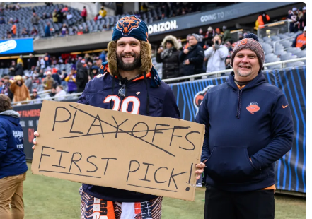 在芝加哥以 29-13 輸給明尼蘇達之后,球迷們聚集在士兵球場內觀看德州小馬隊比賽的剩余部分。一位球迷喬丹·拉佐夫斯基 (Jordan Lazowski) 拍下了熊隊鎖定狀元簽的那一刻——以及隨后的慶祝活動。