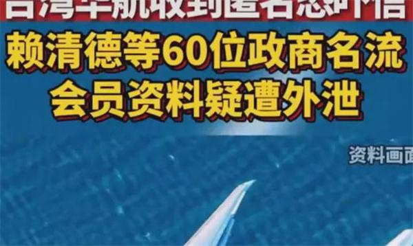 在2023年1月4日有60位臺灣政商及文藝界名人資料疑遭外泄,包括林志玲,郭臺銘、徐熙媛、徐若瑄等這些在臺灣政商界和文藝界的名人,關于此次60名旅客的個人資料外泄的消息是由臺灣中華航空公司傳出來的,這些名人全部都是該航空公司的會員。