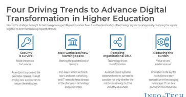 “在需求的推動下,許多技術(shù)趨勢加速發(fā)展,但 CIO 的痛點(diǎn)也在加速發(fā)展,”Maby 補(bǔ)充道。“面對大流行,滿足教職員工和行政部門的要求存在挑戰(zhàn);跟上學(xué)生期望變化的需求;以及 IT 部門工作量增加。盡管存在這些挑戰(zhàn),IT 的職責(zé)是幫助他們的機(jī)構(gòu)采用技術(shù)和流程,著眼于他們的長期技術(shù)和安全影響。”