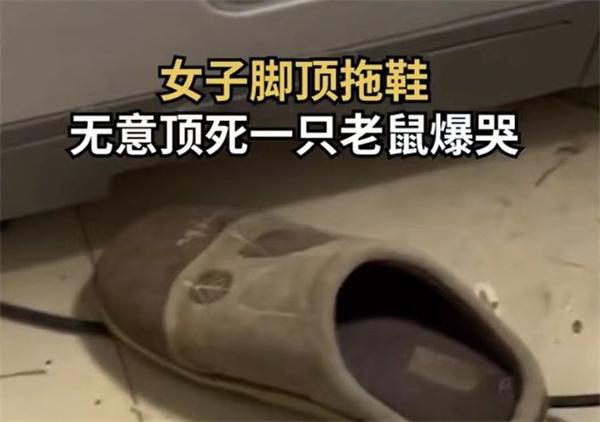 據九派新聞報道,在2023年1月14日,山東臨沂的一位女子在穿拖鞋時感覺里面有異物,就使勁兒往前頂了一下,最后發現竟懟死了一只小老鼠,這個女子表示當時在穿拖鞋的時候就感覺里面有異物,以為是衛生紙呢,就使勁往前頂了一下,后來才發現是一只小老鼠,被頂死了。