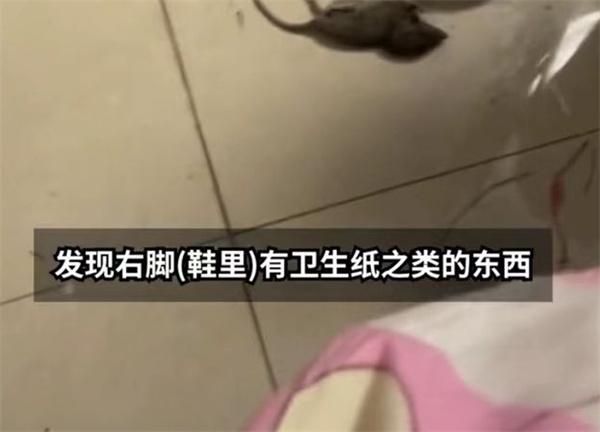 由于本身女子就穿著很厚的襪子,必須向前頂一下才可以將鞋子全部穿進去,所以就使勁往前頂,往前頂的時候才發現有些不對勁,因為衛生紙一頂體積就變小了,這次發現體積沒變小還軟軟的,所以這位女士將鞋子里的東西倒出來一看,嚇壞了,竟然是一只老鼠,還被頂死了,嚇壞了,女子表示本身腳上穿著非常厚的襪子,小老鼠又很小,腳上沒有太大的知覺,心驚之余,將這段視頻拍攝下來發布在了網絡上,引起了眾網友熱議。