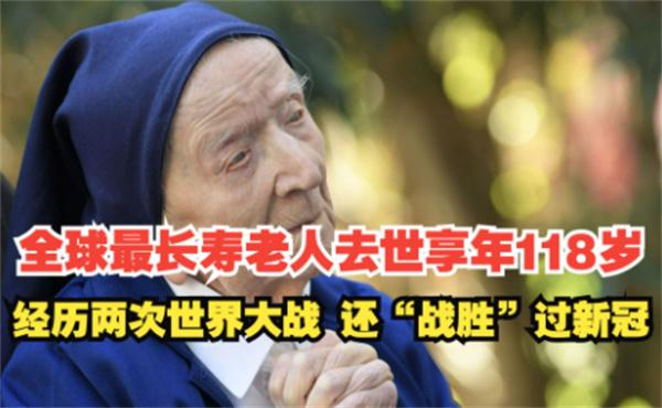 根據美國有線電視新聞網的最新報道稱,在當地時間1月17日凌晨2點,全球最長壽的老人,安德利修女在法國南部城市士頓去世,享年118歲,安德利修女不僅是全球最長壽的老人,也是世上最長壽的修女,根據2022年4月金斯世界紀錄發布的聲明顯示安道里修女出生于1904年2月11日,已經被吉尼斯世界紀錄的認證為有史以來最長壽的修女。