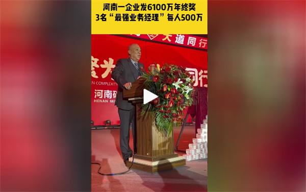 據了解這家企業是河南省礦山起重機有限公司,關于公司發巨額年終獎這件事,記者采訪了該公司宣傳部門的負責人馮先生,馮先生向記者表示說,公司利用發獎金的方式主要目的就是用表彰先進員工的方式激勵更多的員工趕上。