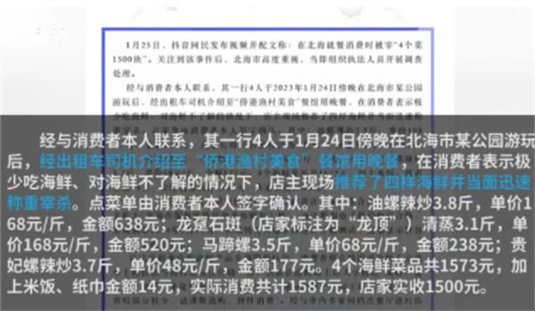 北海通報(bào)4個(gè)菜1500元:店家被立案(限期整改)