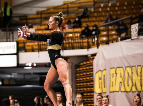 西密歇根體操隊在三輪輪換中領先,但最終在周日下午在肯特州立大學的客場以 195.925-195.425 的比分倒下。