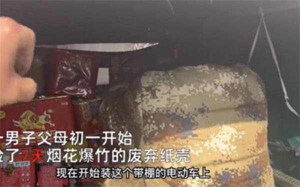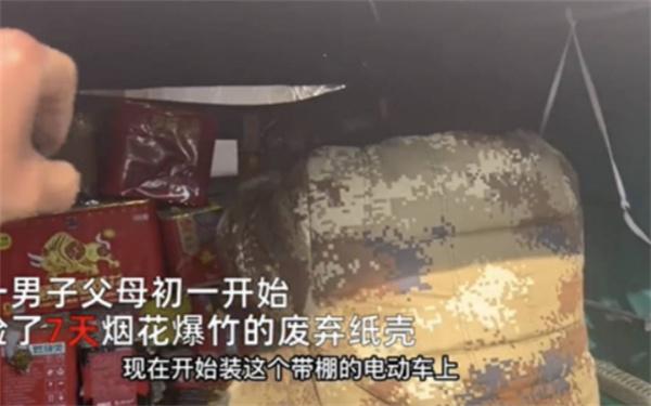 前幾天一名來自安徽的男子,在自己的社交個人賬號上發布了一則視頻,在視頻中稱,從大年初一那天,自己的父親就開始到處撿煙花爆竹的廢紙殼子,夫妻兩人在過年這7天的時間里,減了5000斤煙花紙殼,相當于兩人每天至少要減700多斤煙花紙殼子,看到父母這樣辛苦,兒子表示非常的心疼。