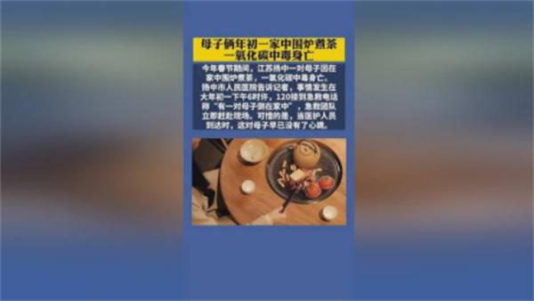 在大年初一這天,正是全家歡聚一堂其樂融融的時(shí)刻,但是在揚(yáng)中市卻發(fā)生了令人痛心的事情,有母子兩人在大年初一在家中圍爐煮茶,最終導(dǎo)致一氧化碳中毒,雙雙身亡,在28日記者從揚(yáng)州市人民醫(yī)院了解到事情的詳細(xì)經(jīng)過,在1月28日下午6點(diǎn)多的時(shí)候有人撥打了120急救中心的電話,稱有一對(duì)母子倒在家中,急救人員第一時(shí)間趕到現(xiàn)場(chǎng),令人惋惜的是,這對(duì)母子早就已經(jīng)沒了心跳。