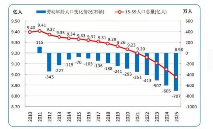 中國在2023年的出生人口將會降到900萬人以下,到了2025年將會下降到800萬人,到了2050年,中國的總?cè)丝跀?shù)將會減少到11.7億人,在2022年中國65歲以上的老人已經(jīng)占到總?cè)丝诘?4.9%,這也標志著中國已經(jīng)進入到了深度老齡化社會,在2032年將會進入超過20%的比例,中國的勞動力將會在2050年降低到59.98%。