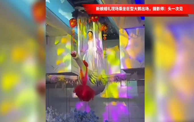 一場(chǎng)別具特色的婚禮現(xiàn)場(chǎng)會(huì)留下一段美好的回憶,近日在河北邯鄲的一個(gè)婚禮現(xiàn)場(chǎng)中,新娘乘坐巨型的天鵝登場(chǎng),在天鵝的脖子上掛著一朵大紅花,天鵝的翅膀緩緩煽動(dòng),周圍散發(fā)著五顏六色的光芒,非常吸引眼球。婚禮主持人表示,天鵝是忠誠(chéng)和愛情的永恒象征,自古以來也被稱為美善天使,有著非常好的寓意。婚禮攝影師也表示這是酒店的一大特色,當(dāng)時(shí)在攝像的時(shí)候也很震撼。