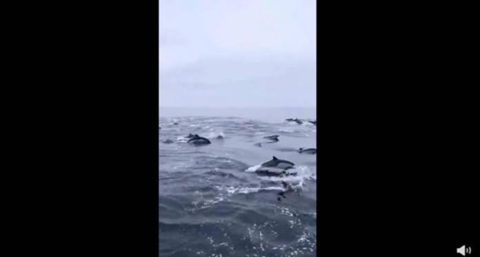 這已經不是海豚第一次出現在這片海域上,但這次出現的數量如此龐大還是十分令人震驚的。當日的天氣情況良好,當海豚跳出海面的時刻和陽光結合,能看到海面上的一條條優美的弧線,當時漁民們看到這一幕都表示不可思議,當時露出面海的就有上百頭海豚,相信還有更多的海豚在隨波逐流,一起翱翔在大海中。我們應該繼續保護漁業資源,讓可愛的海豚們擁有更舒適的生存空間。