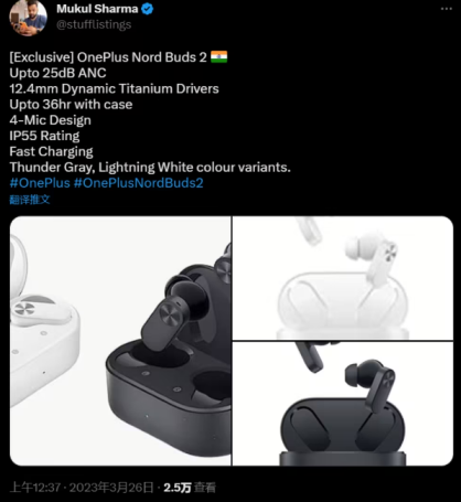 一加 Nord Buds 2 藍牙耳機即將上市,并據說支持主動降噪技術,降噪深度達到 25dB。這款耳機將提供雷電灰和閃電白兩種顏色,并且還配備了 4 顆麥克風和 12.4mm 動態鈦驅動器,續航時間長達 36 小時,同時支持 IP55 防水和防塵等級。