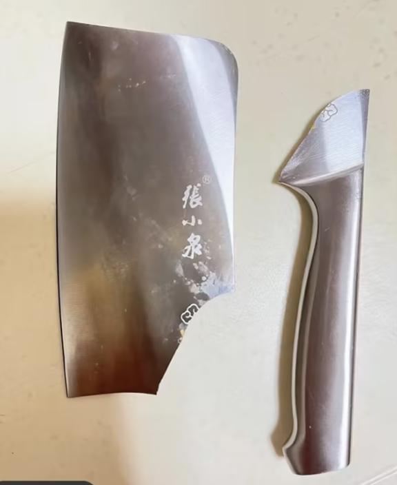 南都記者指出,上述消費者曝光的斷裂斬骨刀是全鋼制的。有客服人員表示,“全鋼制的刀具雖然堅硬,但韌性較低。”