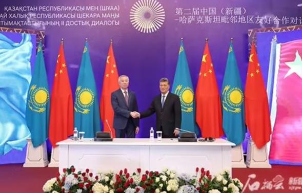 3月28日,第二屆中國(新疆)—哈薩克斯坦毗鄰地區友好合作對話會在阿拉木圖舉行。自治區黨委書記馬興瑞、哈薩克斯坦副總理兼貿易和一體化部部長茹曼加林出席并致辭。