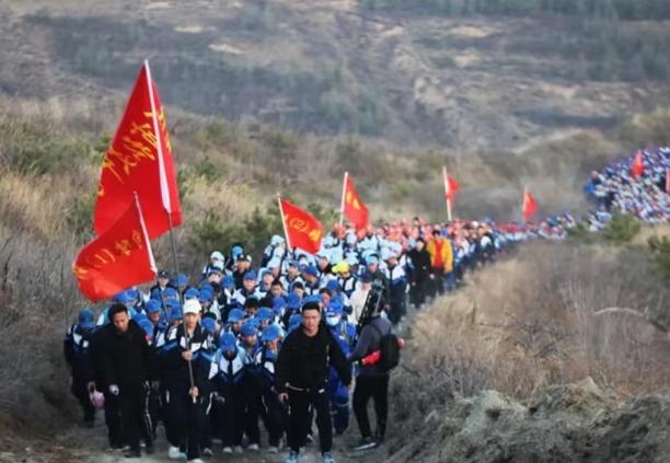 在4月1日,寧夏固原市的2300名師生踏上了徒步54公里祭拜先烈的旅程。這項活動已經堅持了28年,由弘文中學在1995年發起,至今每年在清明節前堅持舉辦。學生們手舉紅色旗幟,拉著橫幅,整齊列隊在清晨時分離開校門,迎著瑰麗的朝陽,一步一個腳印,踏上征程。視頻中,孩子們擺成一個個方陣,戴著統一顏色的帽子,神態莊嚴而堅定。