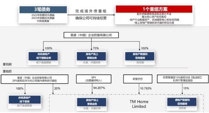 阿里巴巴作為主要債務(wù)人,已經(jīng)簽署協(xié)議支持易居境外債重組方案,并重新簽訂了新的合作協(xié)議。阿里巴巴授予易居對于天貓房產(chǎn)行業(yè)獨家招商權(quán)、商業(yè)定價權(quán)、商戶運營權(quán)。但在重組期對天貓好房品牌的保護(hù)下,阿里巴巴暫時收回品牌授權(quán),由天貓統(tǒng)一管理。