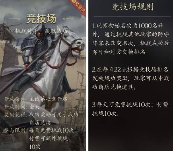 首先,參加競技場需要主線任務開啟第七章以后才能參與。門檻并不高,每天可以打10次,額外增加挑戰次數則需要多付門票費。全程不會占用太多時間,而且可以自動進行,獎勵豐厚,建議玩家有時間的話一定要去嘗試。