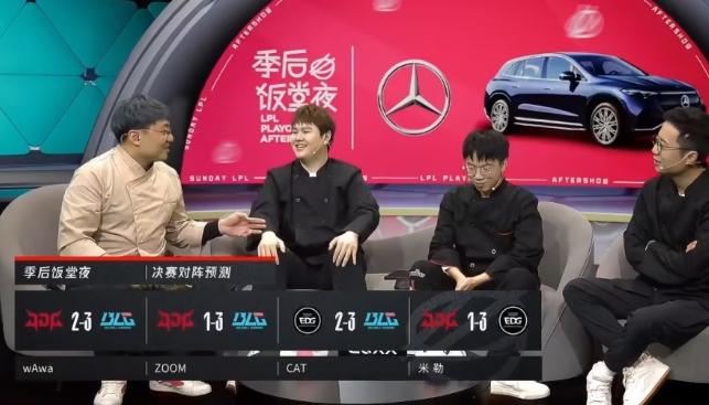 在四強賽第二輪的比賽賽程公布后,LPL官方節目《季后賽飯堂夜》中,解說娃娃、米勒、Cat以及LPL職業選手Zoom紛紛預測各自心目中的冠軍隊伍。然而,有趣的是,這四位嘉賓中,竟然沒有一人看好銀河戰艦JDG奪冠。