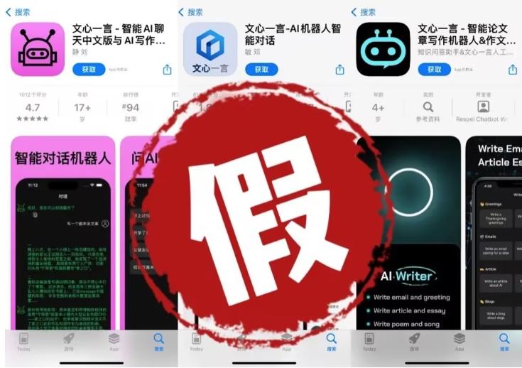 百度AI微信公眾號于4月7日發表聲明稱,目前并沒有官方的文心一言APP,因此任何在App store和各種應用商店中出現的“文心一言”APP都是假的。同時,聲稱有“文心一言源代碼”的也都是騙子。百度AI已經向北京市海淀區人民法院起訴蘋果公司及相關開發者團隊。